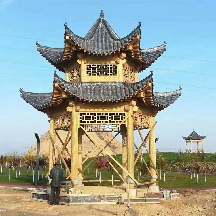 2、在配備的工人方面,仿古涼亭于平常的防腐木涼亭也是不一樣的,平常的涼亭只需要木工就可以建造完成,但仿古涼亭卻另外需要專業(yè)的瓦工、彩繪工人。只有專業(yè)的瓦工和彩繪工人才能保證仿古涼亭的效果,且彩繪過程對公認的要求很高,否則稍不注意就會出現(xiàn)油漆不均勻的現(xiàn)象,極其影響美觀。